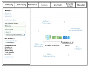 Statt einer möglichst dichten Darstellung der Offenen Bibel schon auf der Startseite ist, glaube ich, eher so etwas geboten: